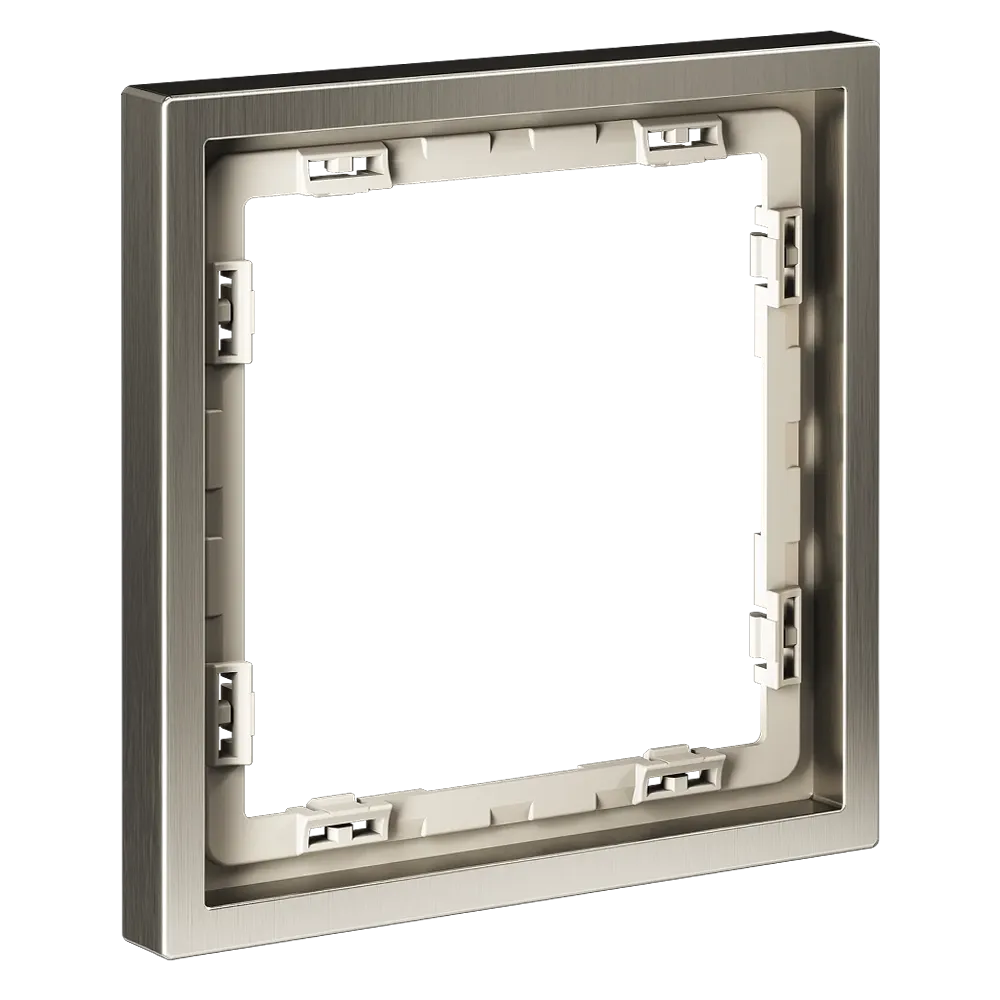 Обеспечивает быстрое и легкое соединение механизма с рамкой. Восемь фиксаторов по периметру нивелируют неровности стены и надежно удерживают конструкцию.